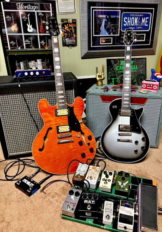 I finally was able to spend some time with the Heritage tonight. I took off the factory 10s, put on a fresh set of 9s and did a full setup along with fretboard conditioning. This H157 displays all the signs of Heritage’s top tier quality and construction. Fit and finish are great!! Fret work (PLEKED from the factory) is great too!! Electronics are also great quality. Low friction pots. Switchcraft toggle and jack. Heritage pickups. I don’t know the specs on these new Heritage pickups. They call them 225 Classic Hot Pickups. To me, they sound like an Alnico 4 or 5. They sound really good!! The neck is a beefy 50s carve. Feels great. Not a baseball bat. Only 8lbs 6ozs! So light for a 157! Tone and playability are both superb. Warm, rich tone. It’s an amazing guitar!!