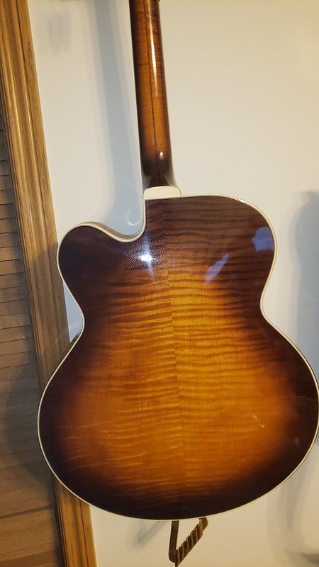 Back in the club. I had to sell my H-150 Vintage Wine Burst about 6 months ago and immediately regretted it. I recently found another Vintage Wine Burst, this time a 2009 H150 and I am happy again. It needed some TLC as a number of things were not working, switch, pots and the pickups had been swapped out. I completely stripped the guitar and used Virtuoso cleaner and polish to buff out a fair amount of scratches. I had a pair of Seymour Duncan double creams and thought it would be a nice contrast to the darker burst and they seem to match the binding well. I added aged Faber hardware to allow the pickups and reflector knobs to pop. I also removed the pickguard to show off the top, because why should that top be hiding behind a boring piece of plastic. The guitar weighs an impressive 8.4 pounds and has a nice authentic and woody tone. Out of curiosity, does anyone know why the burst is so wide on these? My previous VWB from 2017 was more of a typical burst around the edges only. This one seems to graduate almost to the center of the guitar.7 points