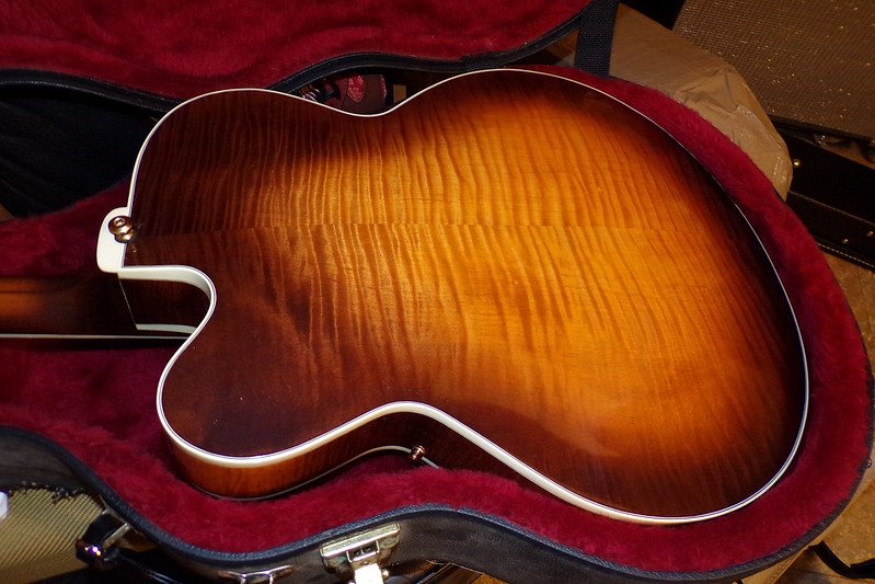 All this talk of H530s started me thinking that one would be quite nice, then I got a message from Cliff Brown of 633 amps. One of his customers had an H530 to sell and, knowing I was a fan of Heritage guitars, would I be interested? Er, yes... Cliff gave me his contact details, I got in touch and arranged to have a look at the guitar, which was located about 1.5 hours drive away. Suffice to say it's a 2018 model in Antique Natural, and playing it through a 633 Firefly (like the one I recently bought) was enough to convince me to buy it. It's light, 2.69kg or 5lb 15oz, and those Lollar P90s sound great! Some pics...5 points