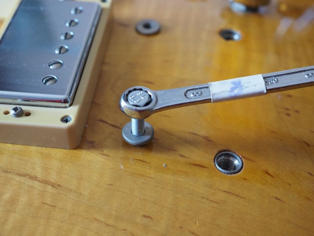 I've changed a few Schaller bridges/tailpieces and I can confirm that both the Schaller and Nashville bridge posts are 5mm thread, so you don't need to change the inserts if you're replacing the Schaller bridge with a Nashville bridge. Same with the tailpiece studs, thought the thread is 5/16" rather than metric. On my H150 VSB I'd replaced the Schaller with a Nashville setup, and decided to replace the Nashville with the Faber ABR-1 conversion. This involved using a 5mm bolt to gently extract the bushings. I needed to make the hole slightly deeper, but aside from that the process was pretty straightforward. Some photos of the procedure...