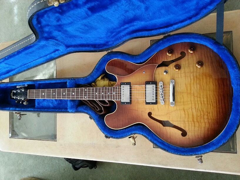 Bluzplayer Posted November 10, 2013 Posted November 10, 2013 Hi, I am new to this forum, but wanted to share a Heritage H 535 I found in a local music shop 12 years ago. The music shop considered this guitar as a "White Elephant" and I was able to obtain it at a steal. This is a H 535 built in 1987 (D serial #), the pup's have been replaced with Gibson 57 classics along with the bridge and tail piece, everything else is original, including the wood pick guard. I have owned several Gibson ES 335's and this guitar has the mojo above comparatively. I am not a collector but a player (40 + years) and this guitar has the tone. I have loaded some pictures for viewing.