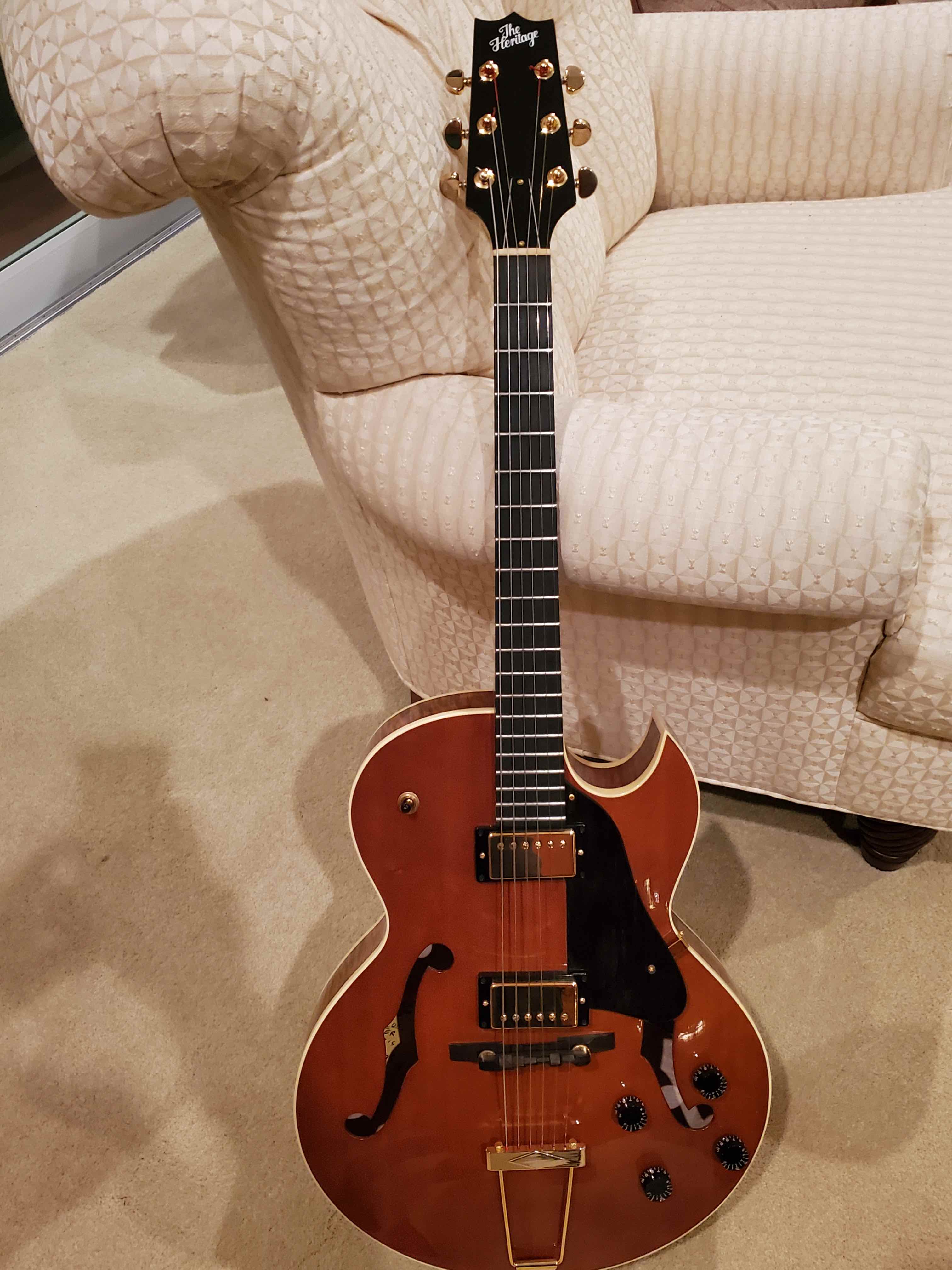 Slpytym Posted November 18, 2020 Posted November 18, 2020 Ok, thank you for the invite. I am a new member, Jeff, and have a brand new, to me , Heritage H575, Mimi Fox edition, and it is beautiful! Plays like a dream. I am 60 - something, have been playing music all my life, but not as a pro. Jazz sax, have played in big bands over the years, jazz piano ( finger issue s on right hand caused me to give it up). Never went to music school, but always wanted to. My heritage is one day old, to me, and I love it! Other guitars are a 1979 Guild D-35 ( still great), Martin OM-28, G&L tele ( cool), and a Comins GCS1 ( marvelous). I play through a Genzler amp. I am now taking jazz guitar lessons from a wonderful teacher - after years of raising kids and not playing. If anyone is interested in the real deal as a teacher just let me know - he teaches over the internet in this crazy day and age. I spend hours some nights playing, practicing, going down rabbit holes to explore chord melodies and improvization - it is a relief and release from the stresses of work and life. I hope that the pics come out well....