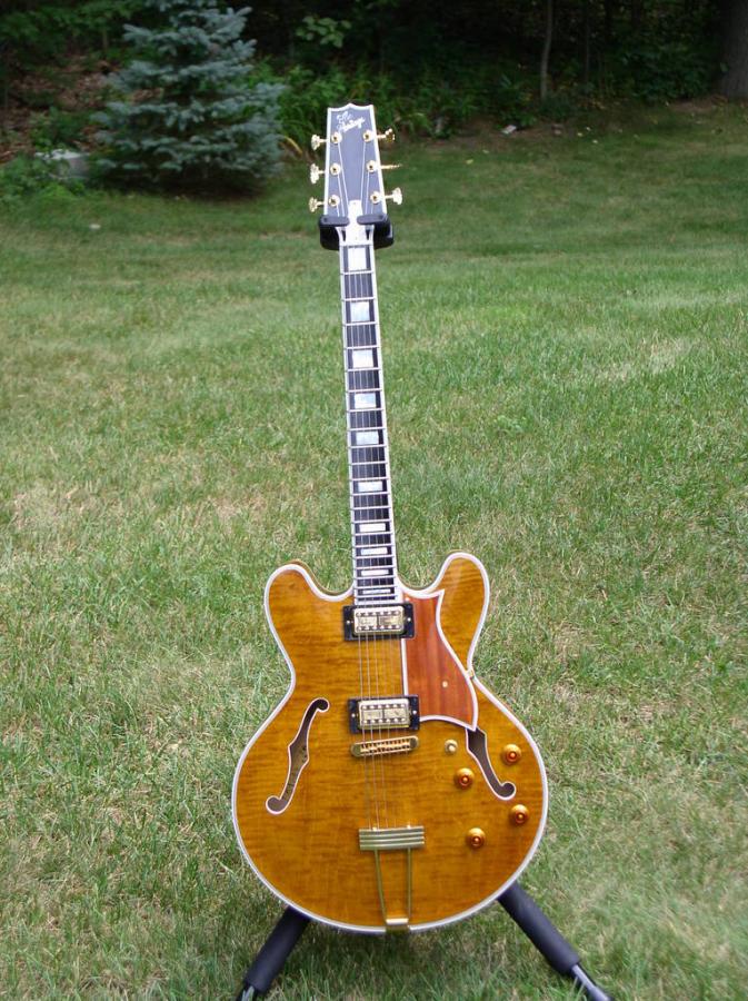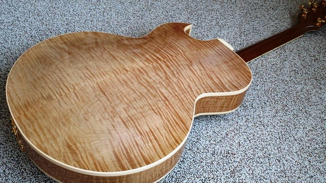 skydog52 Posted March 1, 2018 Author Posted March 1, 2018 H-535 Custom Seth Lovers Academy Custom. Thro-Bak MXV. Marv wouldn't put a cavity plate on it so I told him to put the f-holes in the back for access.