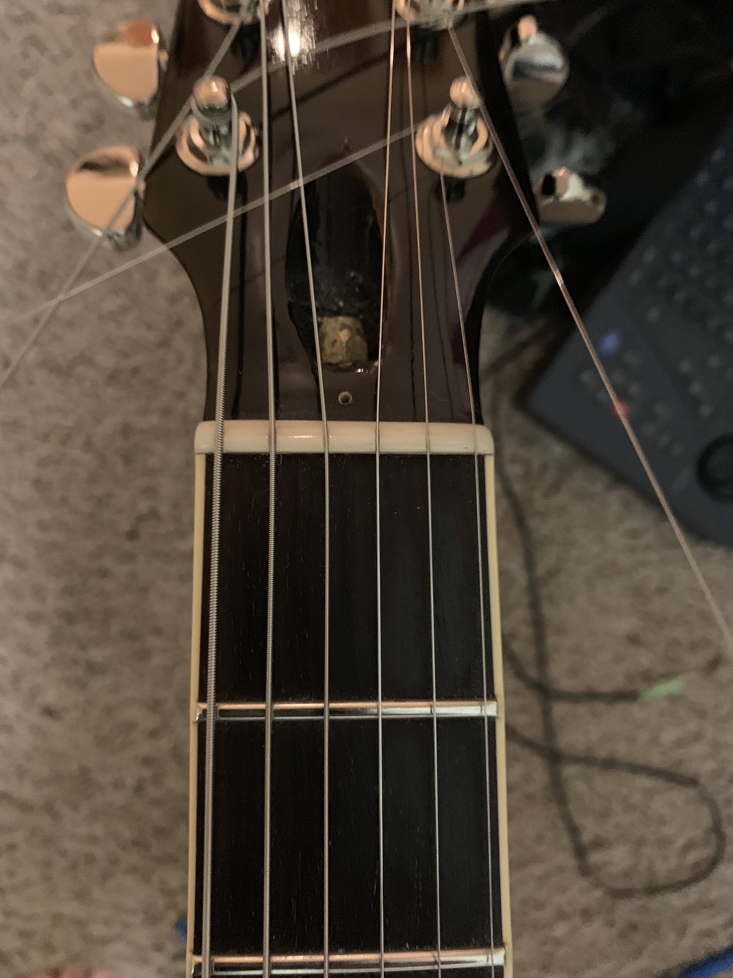 gary0214 Posted August 28, 2019 Author Posted August 28, 2019 i think the nut spacing looks okay. see attached pic. next, i bought a "GuitarGizmos Saddle Slot File Tune-O-Matic Bridge". i decided i'd try to put an extra off center slot in the existing bridge saddle. that cascaded to "well, now i have a low E string that is too close to the A string. i'll go ahead and create new slots on all the saddles." i'll attach the before and after pics in a few new posts since there's a limit to the size of attachments per post. i've never slotted any saddles before, so my work was sloppy. it doesn't look good. i won't show you the work! next, i decided "i'll buy some new saddles, and i'll do a better job slotting the things". i'll give some more info in the next couple posts...