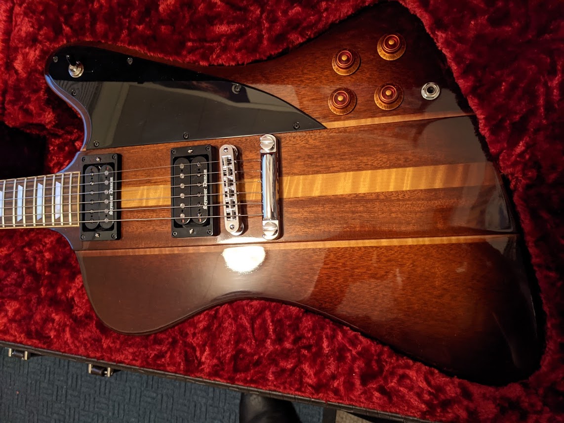 MartyGrass Posted March 31, 2021 Posted March 31, 2021 I have an affection for this model. My first guitar was a Firebird V at age 12 or 13 I got from a neighbor. I played that a lot. I then lucked into a ES-345. It may have been an even trade. Years later I began to appreciate the genius of the Firebird design, but many of them were not built to the highest quality back then. Marv's without exception were works of art. In my teen years I never liked the Les Paul design. The Firebird felt more comfortable, as did the Strat. I'd be happy with a Marvbird with humbuckers or P-90s. The Firebird pickups are too bright for me.