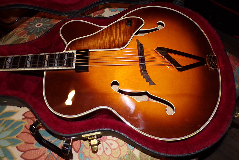 MartyGrass Posted April 14, 2021 Posted April 14, 2021 Some are familiar that Heritage built both D'Angelico and Gretsch high end archtops in the 1990s. Not many were made. D'Angelico moved to Asia with a small American shop in New York I think. There were very few Heritage built ones, and these are treasured. The number of Gretsches seem to be a bit more, but not by that much. Fred Gretsch III implies 10 full sized archtops were all Heritage made. Some say a few more. The Gretsch family sold off its collection of all things Gretsch recently to raise money for the Gretsch Foundation, which supports music education in a big way. Gretsch had built some 18" archtops prior to shifting operations mostly to Asia. These were called The Eldorado. Heritage made their version, which is basically a Super Eagle body with x-bracing, a thinly carved acoustic top, thin lacquer (maybe five coats) and Gretsch adornments. I picked up three and my friend got one. None of them had been retailed, so they were NOS. Two of them were from the first batch, 1992, and two were from the last, 1996. That's what I was told and what the serial numbers seem to say. The three I got look unplayed with the exception that the pickguard in the 1992 looks lightly strummed. I spent a lot of time cleaning the residue off of the finish. I'm not done yet. One guitar is mostly cleaned and the other two are half way. The strings are original and badly corroded. I can post a few preliminary pics. You can spot the Heritage in them.