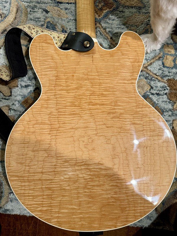 MartyGrass Posted February 24, 2024 Author Posted February 24, 2024 The guitar arrived yesterday. Shipping went from California to Michigan, but timing was right to avoid great temperature changes. The packing was excellent. It came in a large Reverb box. I owned this guitar once upon a time. I forgot how 3D the figuring is and how it really pops out. I also like how the maple back and neck are the same color. The mahogany color shift on a natural maple body is fine on other guitars. But the white (now yellowing) continuity from top to bottom is appealing. The action is ridiculously low without buzzing. Let's shift to shipping. This was $190 UPS ground. The UPS man told me how costs are going up. I'm sure part of it, probably a large part, is due to personnel. Another component is the cost of diesel. One barrel of crude oil only produces about 11-12 gallons of diesel, compared to 19-20 gallons of gasoline. Insurance costs may also be higher. I have a similar vintage H-555 that shows what Floyd Newton could do to create a tri-burst. The transitions in coloring and the symmetry are an artist's work. My observations over the years are that the old Heritage was very flexible in custom makes. Sometimes the quality was uneven, but usually they were great. Today there is more consistency in good quality but less flexibility in design. Yes, you can get custom builds but not so whimsically anymore. And guitars are expensive.