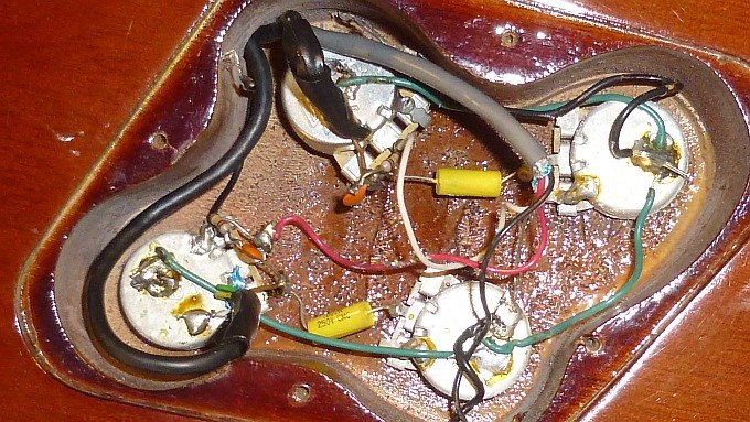 TalismanRich Posted April 20, 2024 Posted April 20, 2024 I think the fret wire is standard Jesco stuff. It's pretty much used industry wide, unless you go with stainless. I don't remember the number, though. The caps in most Heritages are Vishay MKT metalized film. They are yellow axial capacitors and are good caps. The pots can vary over the years, depending on availability. They use standard audio taper pots. I have tried changing pots and to be honest, sonically there was no change. I had one that was scratchy, so I replaced all 4 with CTS pots. The only difference was in the feel, as I used low torque CTS with a 15% taper which changes the rate of volume change as you turn the knob. They also made it easier to turn, which might be good or bad, depending on your style. Wire is wire... You can get nice cloth covered vintage style wire, but it won't change the sound. It's pretty and if you want it to look like 1959, then go for it. Jacks and switches are pretty much generic. If they are clean and work, they're good. If they get dirty and noisy, or cut out, then change them out. I've used Switchcraft and cheapos from China and as long as they are quiet and solid, they're fine. Depending on how you like to roll off volume, I added a treble bleed to my 157 for a while. I liked it's effect more than 50s wiring or standard wiring. Here's my 157 control cavity with treble bleeds and the stock pots and caps. As I had changed a noisy switch, I changed the cable running up to the switch with a shielded cable. (the grey stuff).