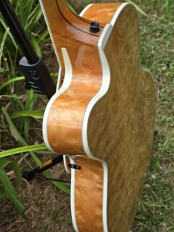 LonelyLefty Posted June 24, 2024 Posted June 24, 2024 On 6/22/2024 at 8:49 AM, MartyGrass said: I don't have much to say about this. A friend of mine bought another Heritage Johnny Smith, one that was Jay Wolfe's personal one I got years ago but traded to BigMike. As many may know, BigMike sold his 70 guitars to a music store in Chicago. Two Heritage JSs were part of the collection. My friend drove there and bought one but told me the other one sounded and played equally well but didn't have a rose on the pickguard. I called the store in Chicago and asked about the remaining HJS. I was able to make a purchase. Most of BigMike's instruments are not yet posted on Reverb. If you can buy an instrument now, you can save all the Reverb fees and negotiate a price. The trick is to know what they have that they haven't listed. I don't know what they are except a bunch of Gibsons. Here's the HJS hanging on the wall. It has a Heritage pickguard with Schatten volume and tone controls and a Kent Armstrong pickup. As best I can tell, that's how Heritage made it. We'll see. Any left handed version in the bunch? Love the Maple pickguard.