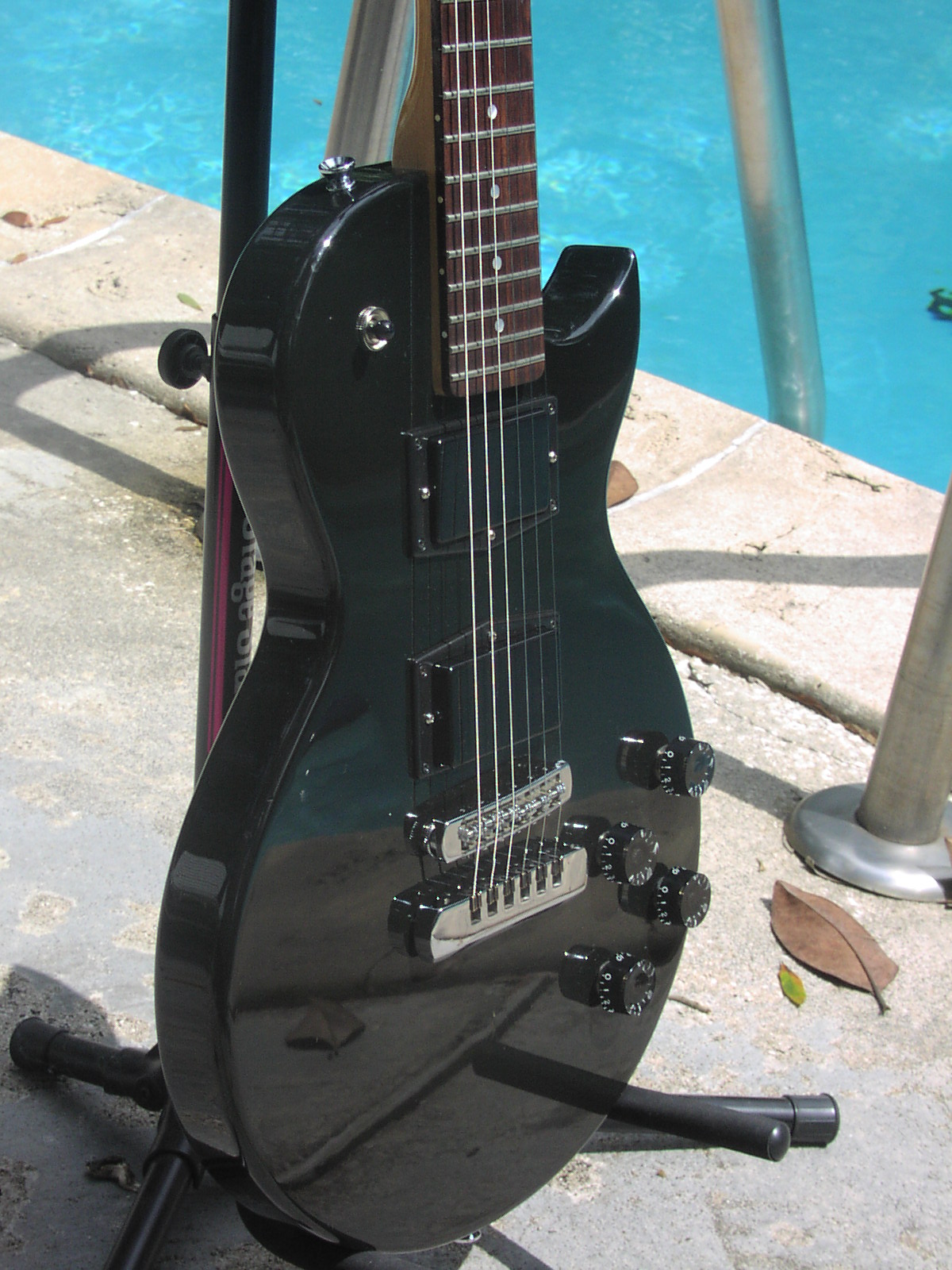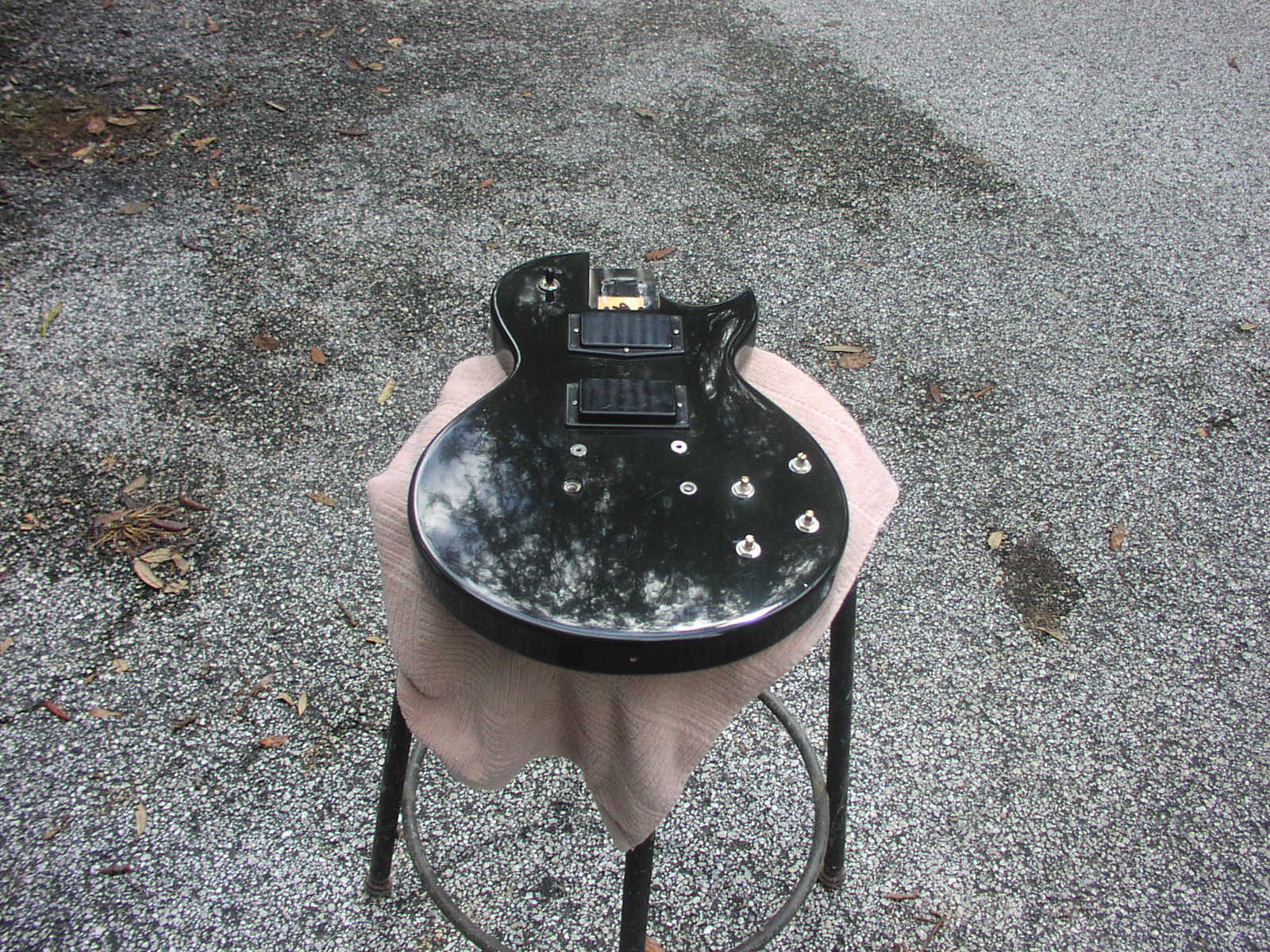 big bob Posted September 15, 2009 Author Posted September 15, 2009 I decided not to shoot the clear coat, I can always do it later if I change my mind. I put her all back to original including black speed knobs. got her all set up action is low, could go lower but low enough for me. The pups do growl, and sustain for days. I had forgotten how f-ing had it is to have a black guitar, basically you touch it and Boom fingerprint, smear, I'll get over it. here are some after shots