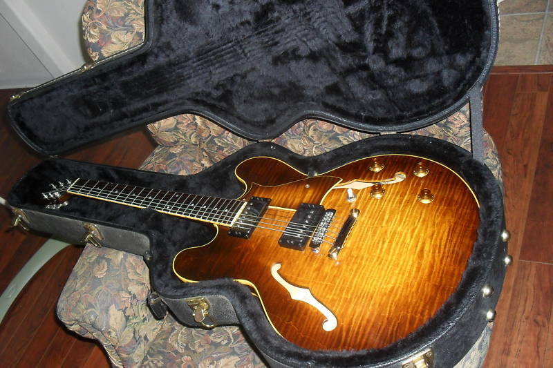 Patrick Posted May 3, 2010 Author Posted May 3, 2010 Found what I think is your guitar on the 'bay. We can post a pic or two from the auction for you, if you'd like. Is it the "Honey Burst"? (which more likely is Almond Sunburst - an awesome color on the semi's.) Yep!! That's it. If you can post those pics I'd appreciate it. I just have to devote a few minutes to try to learn how to do that. I know it's not that difficult . . . . but every time I run into a snag . . . I want to hit my moniter with a baseball bat. Like I said many time before . .. patience is not my strong point. I just gotta sit one day and mess with it. I have a lot of nice stuff I'd like you guys to see. I love to look at the "eye candy" and I feel guilty that I can't share some of my pieces with you guys.